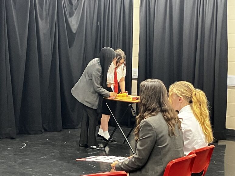 A group of Year 7 students have been working with Studio 3 Arts professional actors this half term. On Monday 3rd July they presented their work to friends and family. Students had been working on improvisation and devising scenes as actors, with a concept of switching tv channels between lots of different sketches. They performed their pieces brilliantly with excellent comic timing having their audience in stitches!
